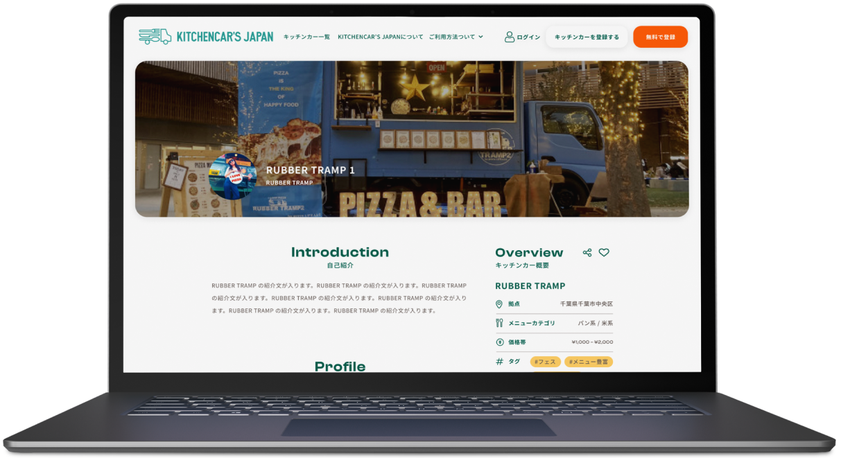 A.登録を行うと、キッチンカーズジャパンのサイト上に、マイページが作成されます。(自店のホームページのような存在です)こちらをご活用いただきWEB上に情報を展開することが可能です。併用して出店者様自身でSNSなどを活用した発信も効果的です。
