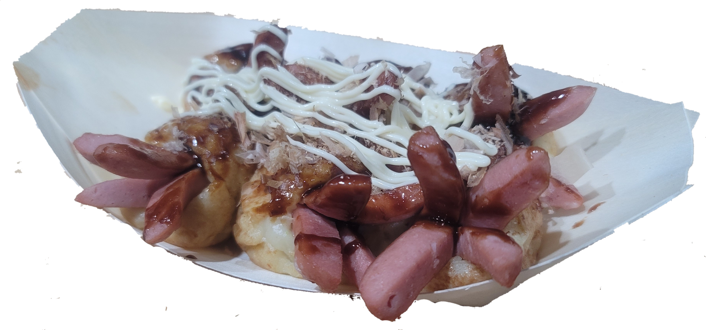 アフロだこでは普通のたこ焼きではタコが食べれないのお子様向けにウィンナーを使ったアフロウィンナーを置いてます✨
