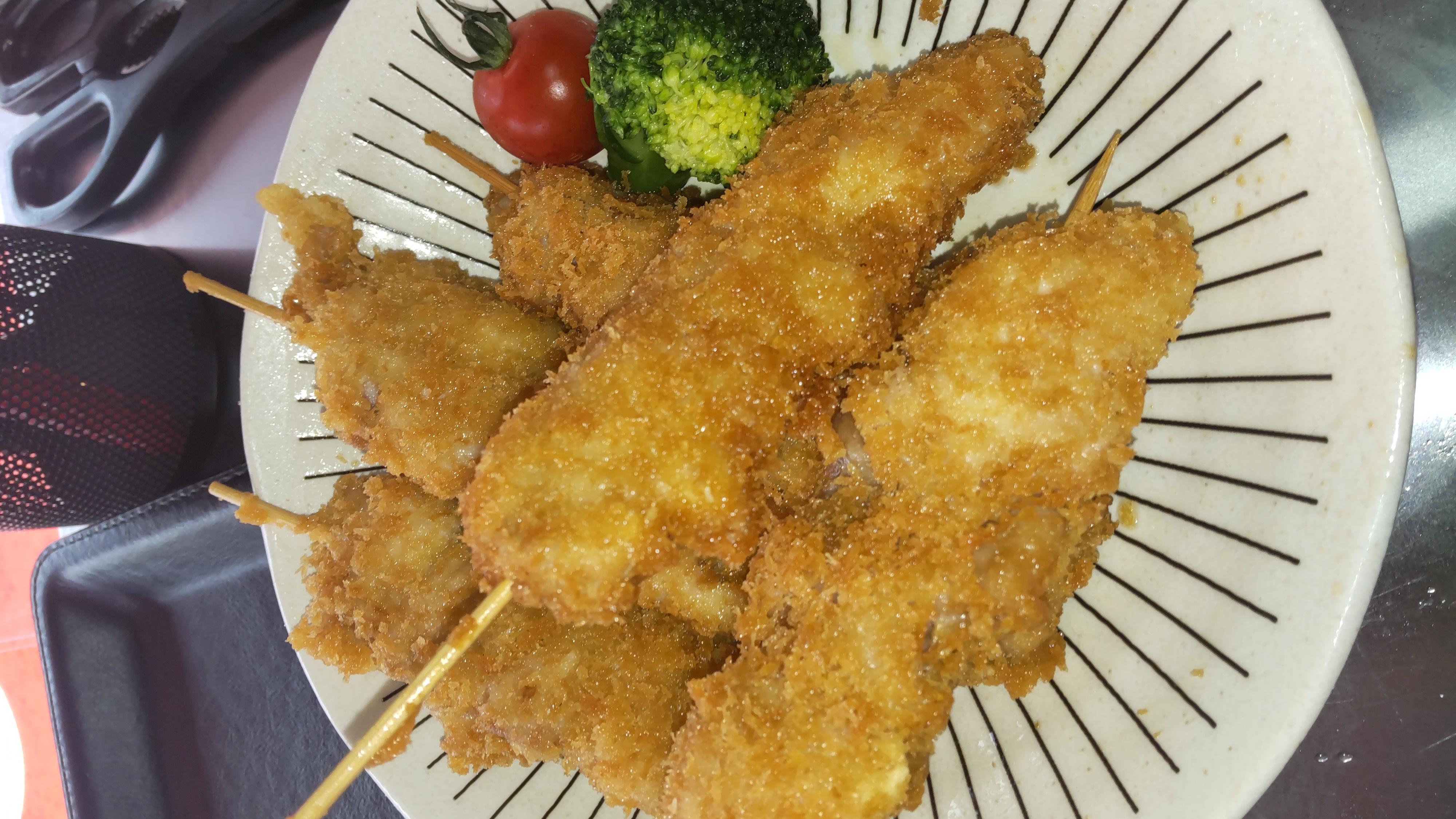 サイドメニューには胸肉を串に刺したチキン棒がおすすめです。胸肉なのに柔らかく仕上げてあります。パン粉も生パン粉を使っているのでサクサクの中にもジューシーさをしっかり閉じ込めてあります。串揚げなので手も汚れず食べ歩きにも最適です。