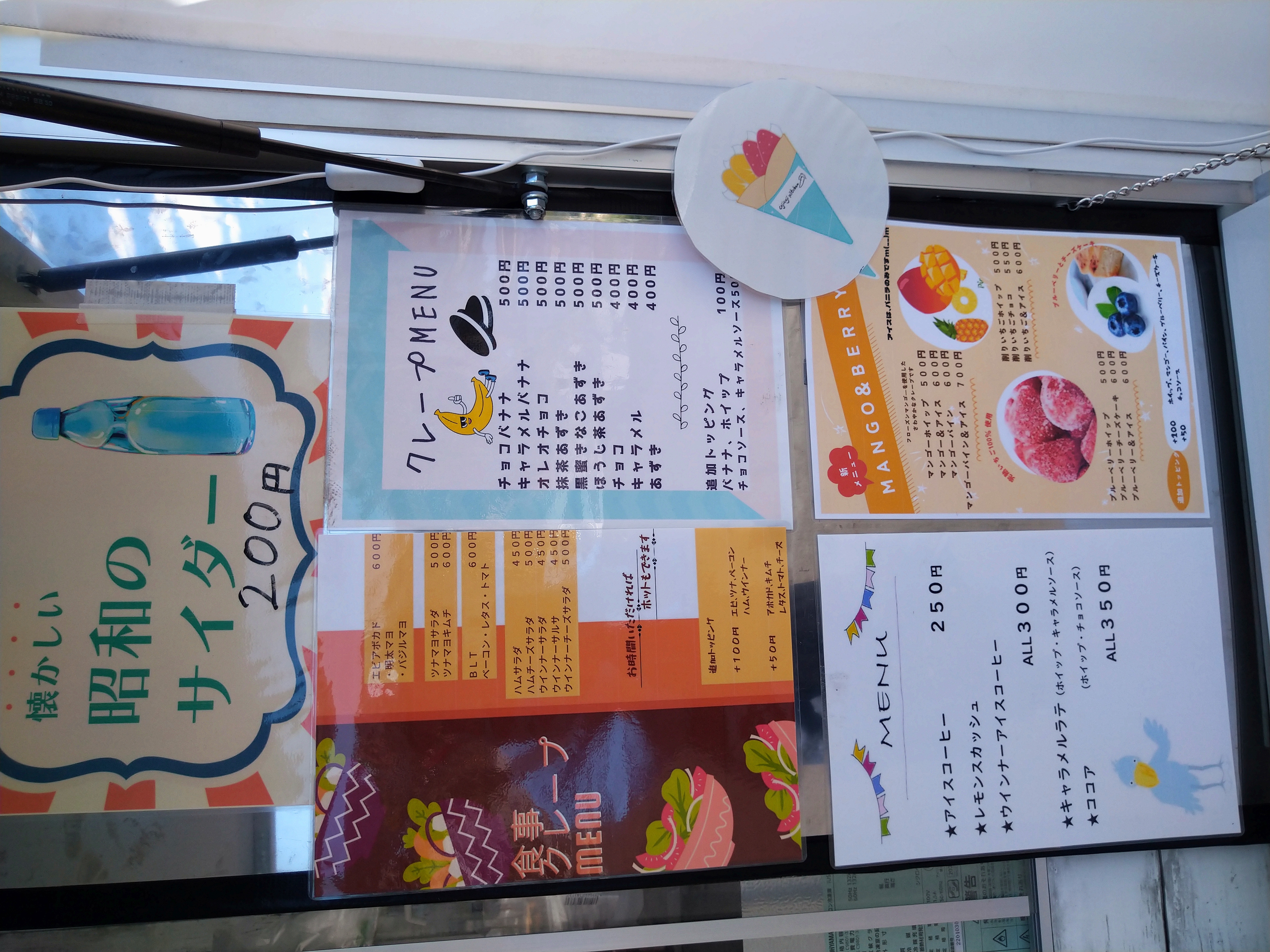 とうふドーナツ、クレープ、かき氷(季節限定)など