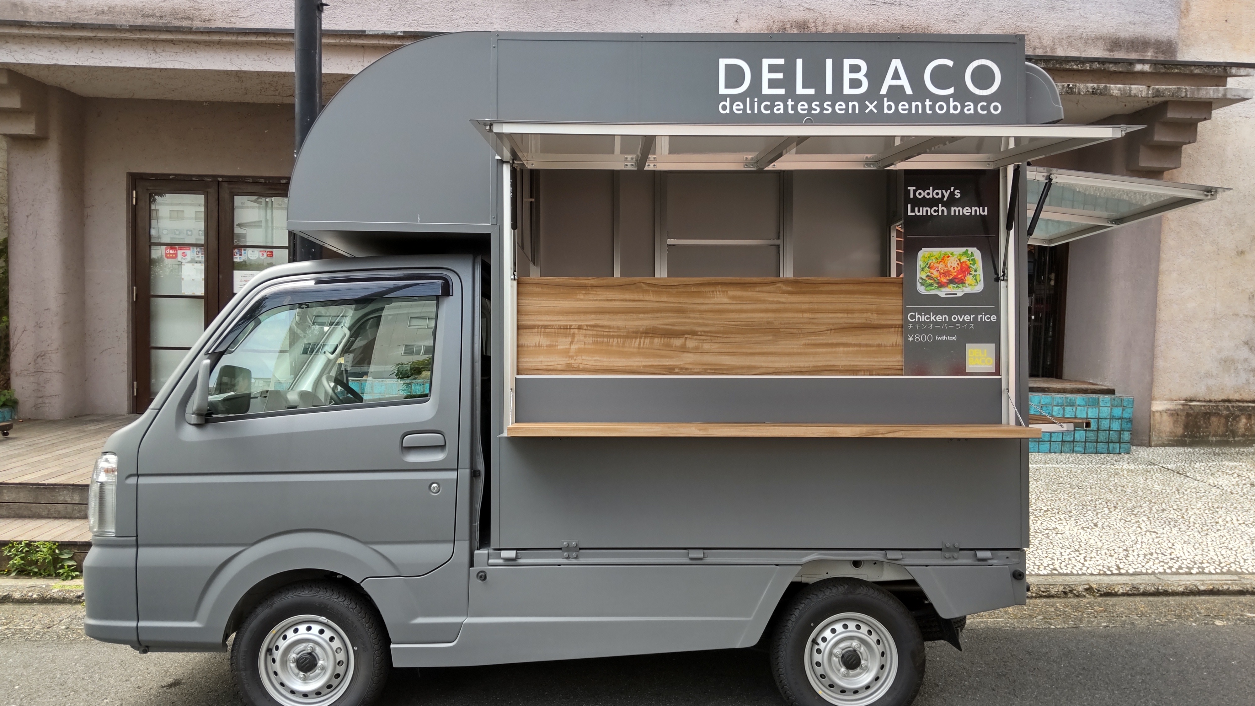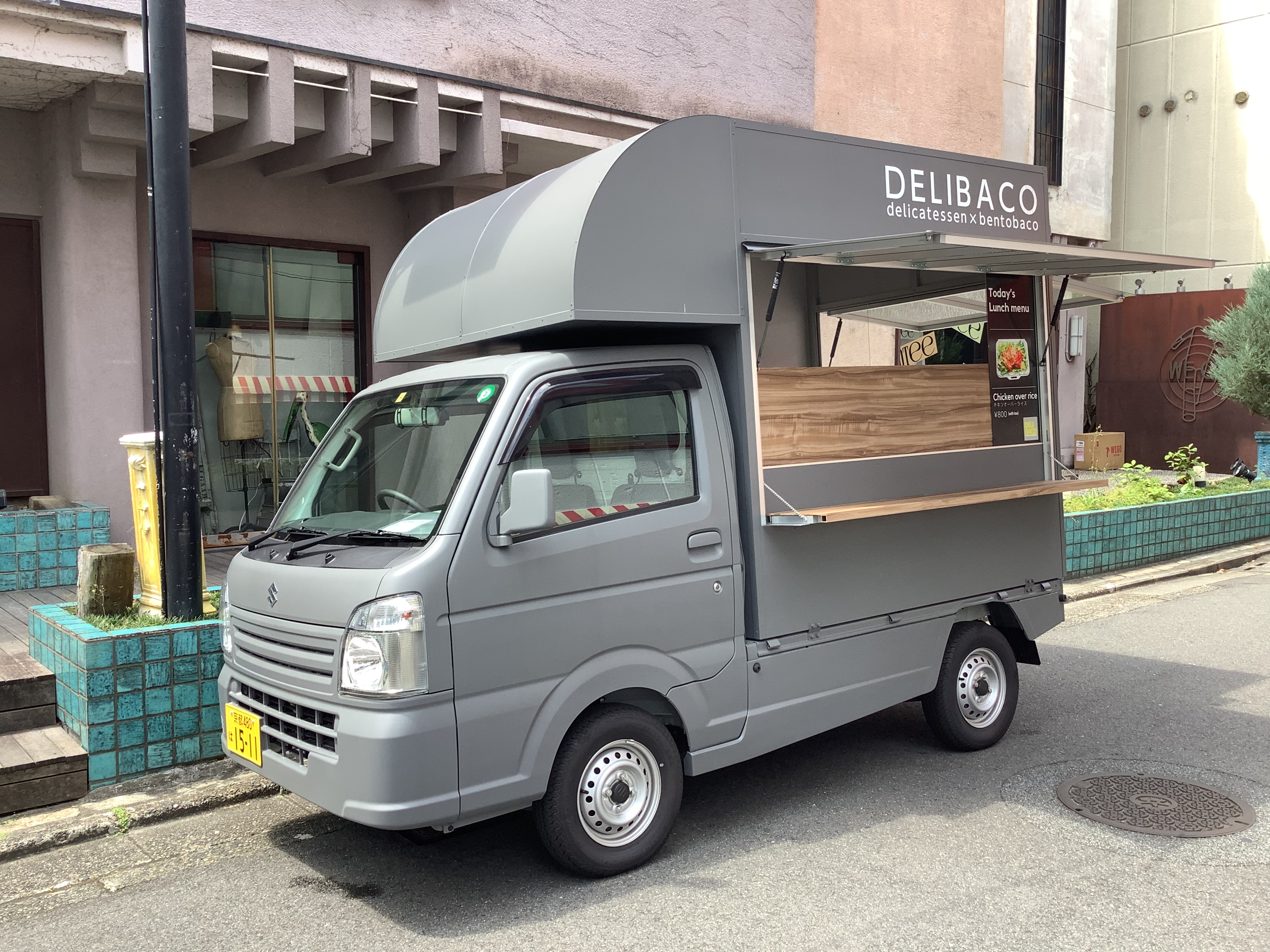 シンプルで都会的なミディアムグレーのキッチンカーです。