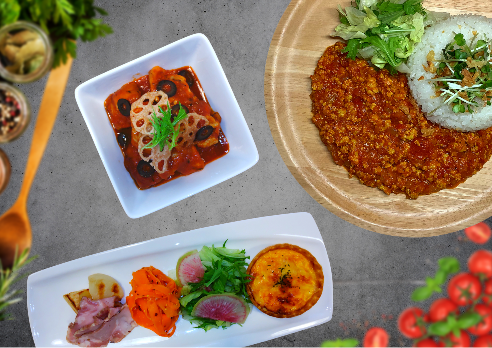 イタリアンライス、トマトキーマカレー、Deli box、他