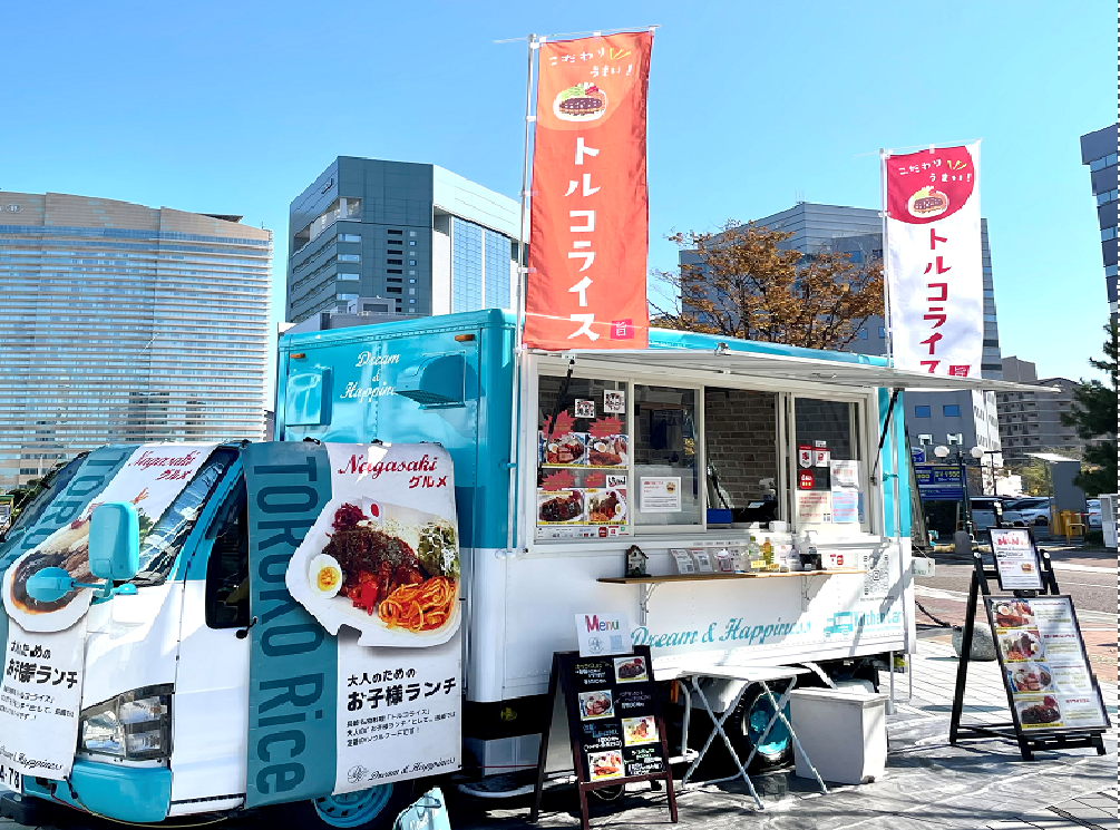 長崎トルコライス、長崎名物食べるミルクセーキ、アジフライの聖地長崎松浦産アジフライ、長崎式見かまぼこ、アメリカンドック、チキンナゲット、各種ドリンク 等