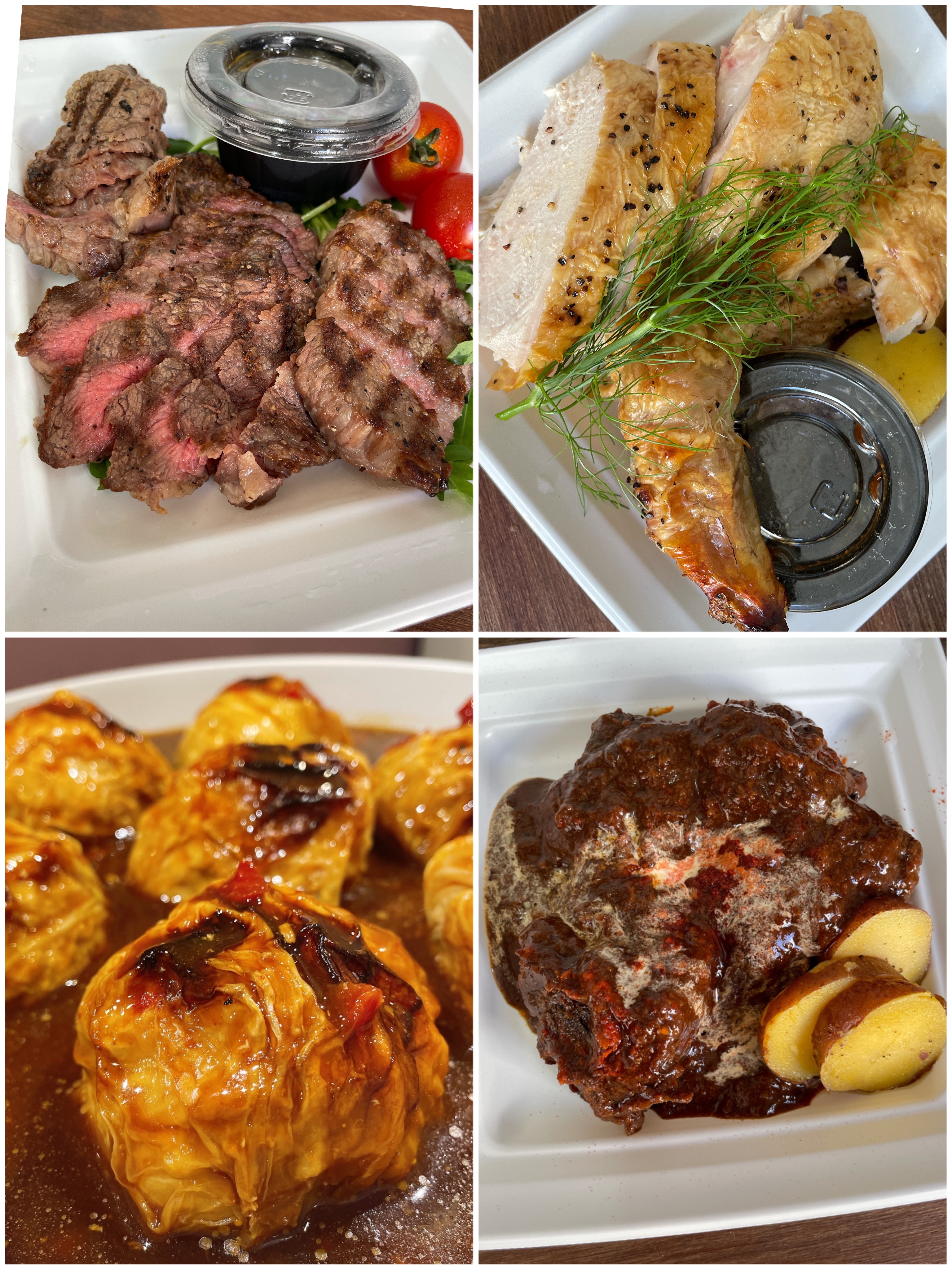 お惣菜として前菜もたくさんの種類がございますが、メインディッシュも日替わりで3種類ほどお持ち致します!