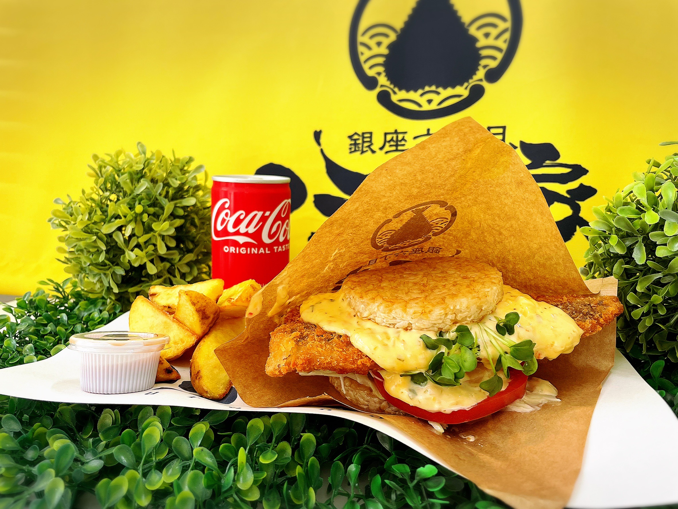 提供するメニューはただのキッチンカーメニューではありません。 銀座六丁目の名店よるメニュー監修により、最高の処理(津本式究極の血抜き)による最高の素材を最高の技術でキッチンカーのクオリティーを超越したフィッシュライスバーガーをお客様にご提供します。