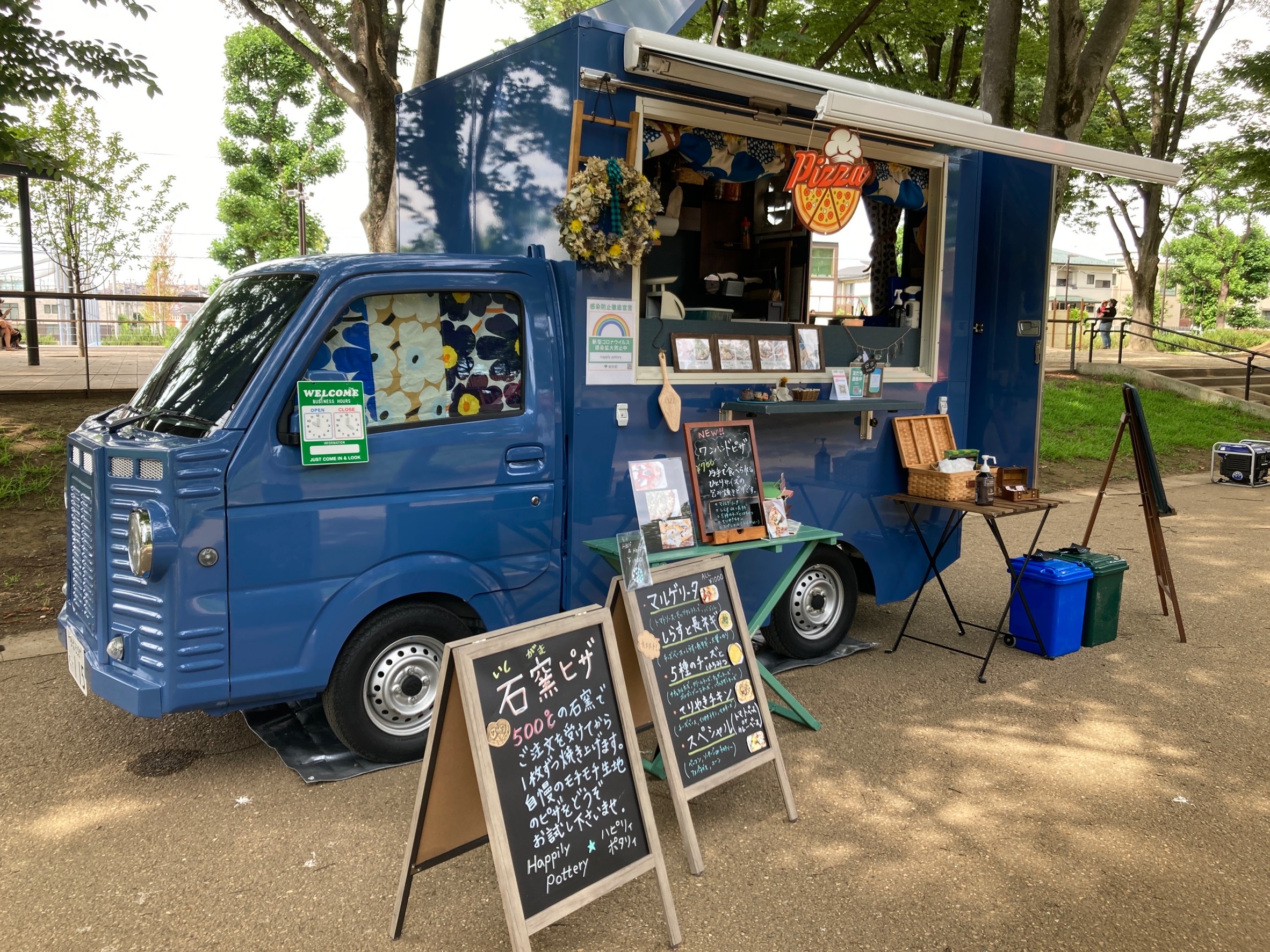 はじめまして。happily pottery です。ハピポタ号は『可愛い』と『美味しい』がいっぱいのキッチンカーです。 熱々の石窯メニューと、大好きな温かくてほっこりするやちむん(沖縄の焼物)、心のこもったハンドメイド雑貨をご紹介します!