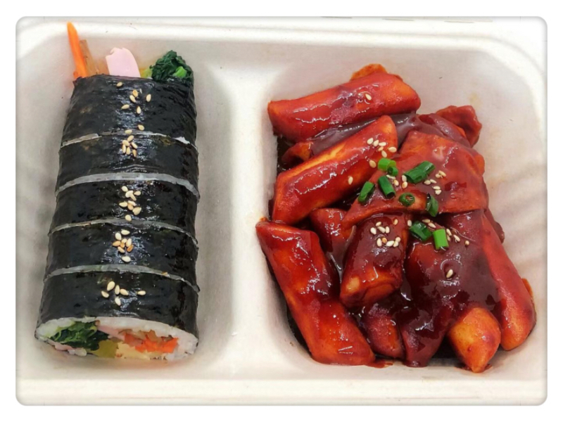 当日巻きたてのキンパと自家製の甘辛ソースで仕上げた美味しいトッポギのセットはおとなの女性が好きな本場の味でございます。