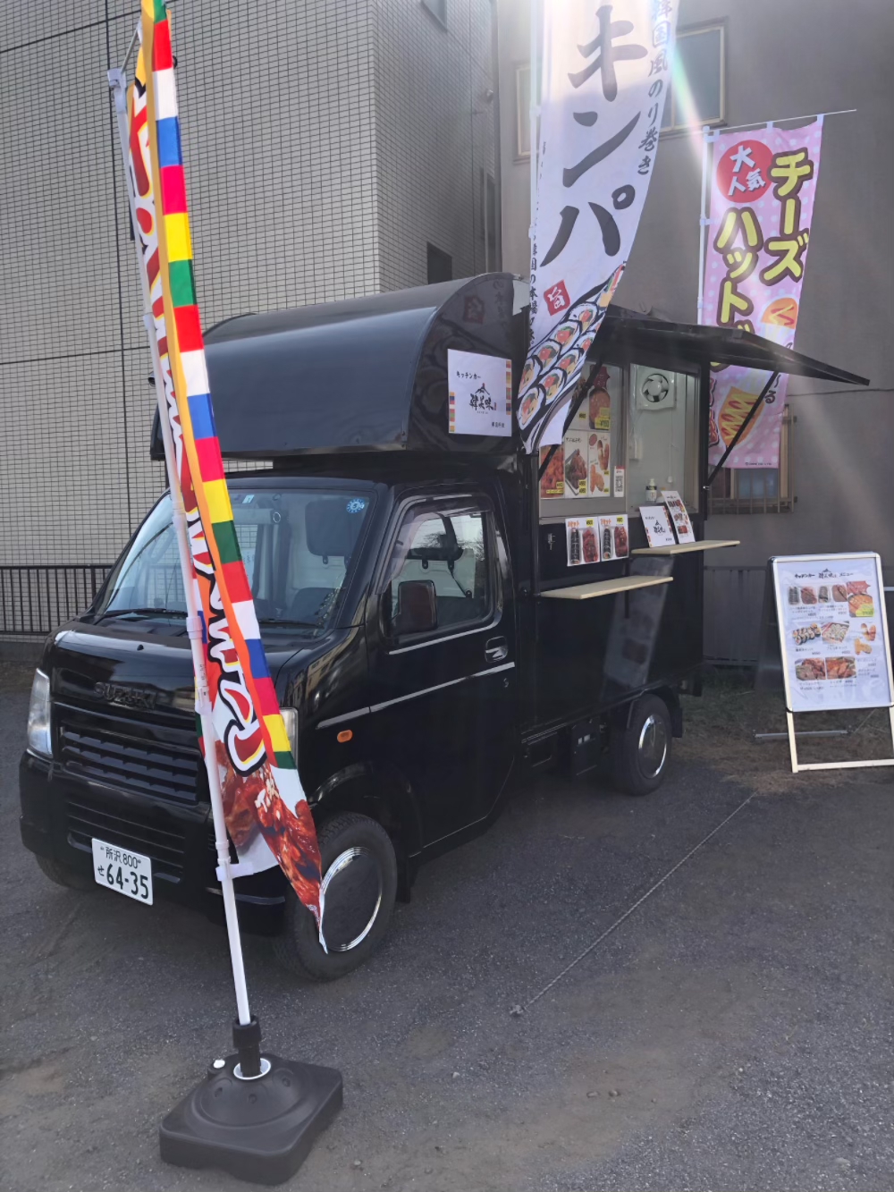 キッチンカー韓美味はシンプルなデザインで場所を問わず人気なメニューをご用意できます。車種も軽トラックタイプなので場所の制限を受けず出店が可能となっております。
