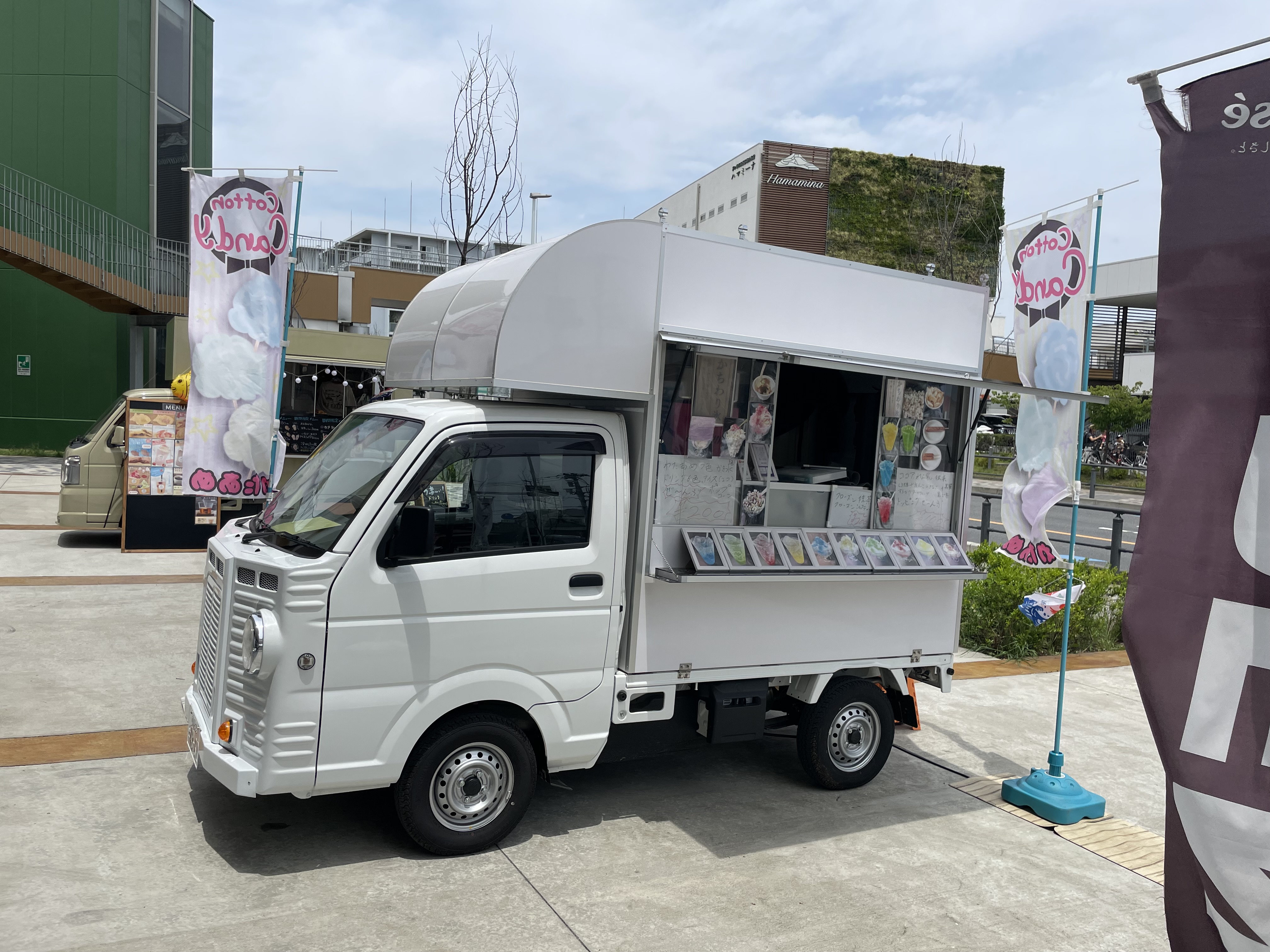 わたあめをメインにアイス、かき氷、ポップコーン、フランクフルト、パリチーなど、軽食のキッチンカーです。