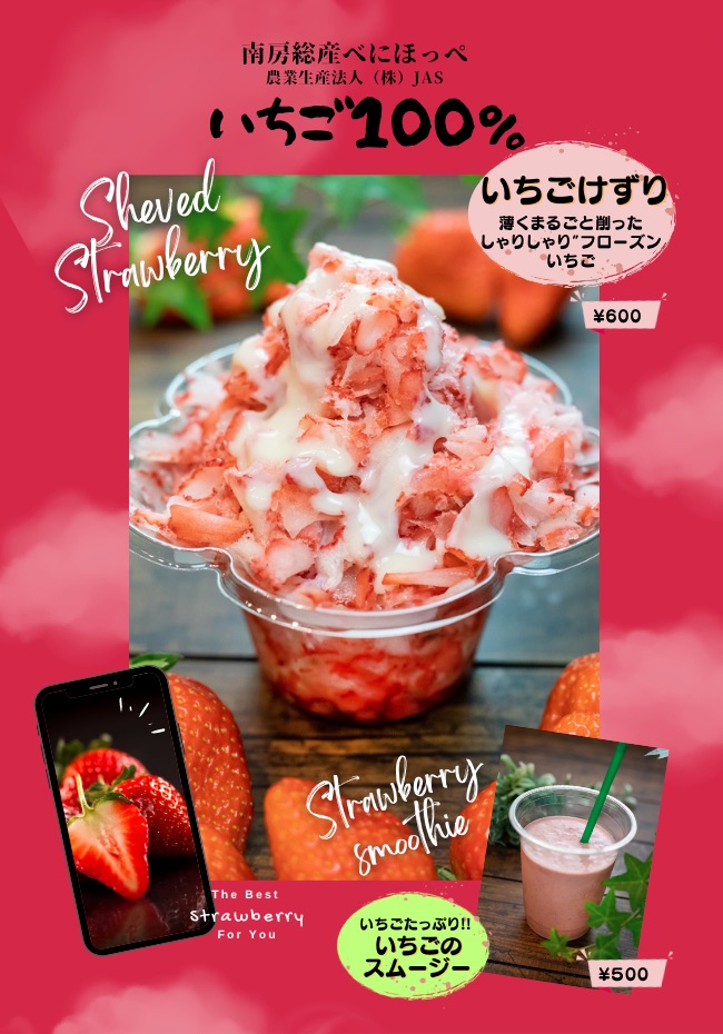 苺農家さんと直接取引きしてますので、季節問わず苺を使ったドリンクやスイーツを提供できます。