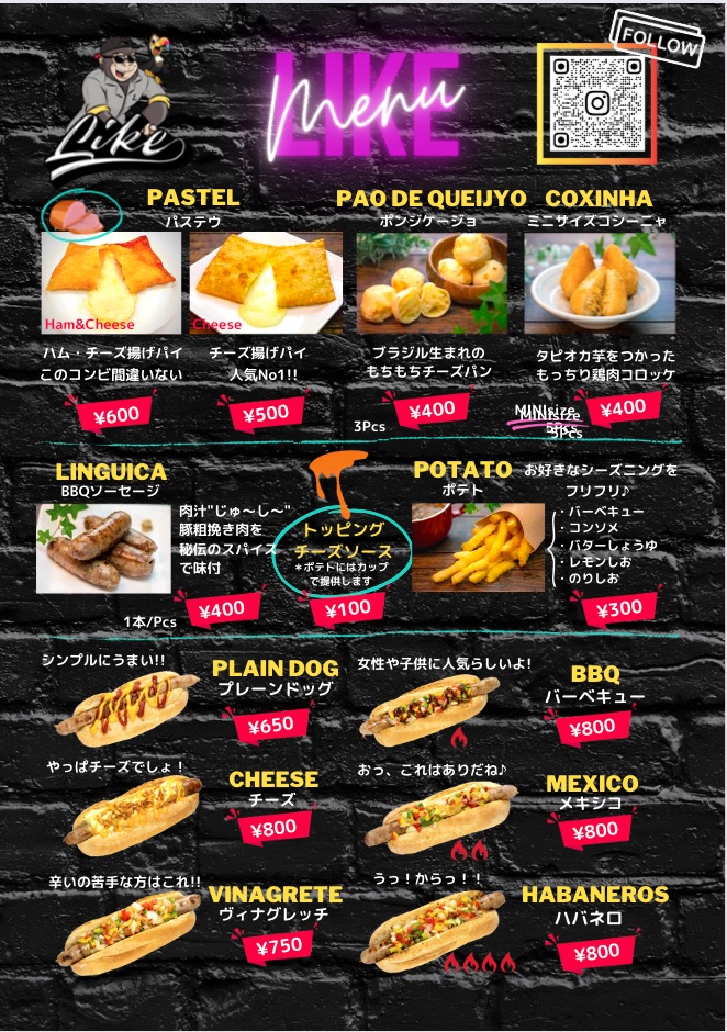 パステウ、苺削り、パステル、ポテト、わたあめ、ビール、ソフトドリンク、サラダ、カキ氷