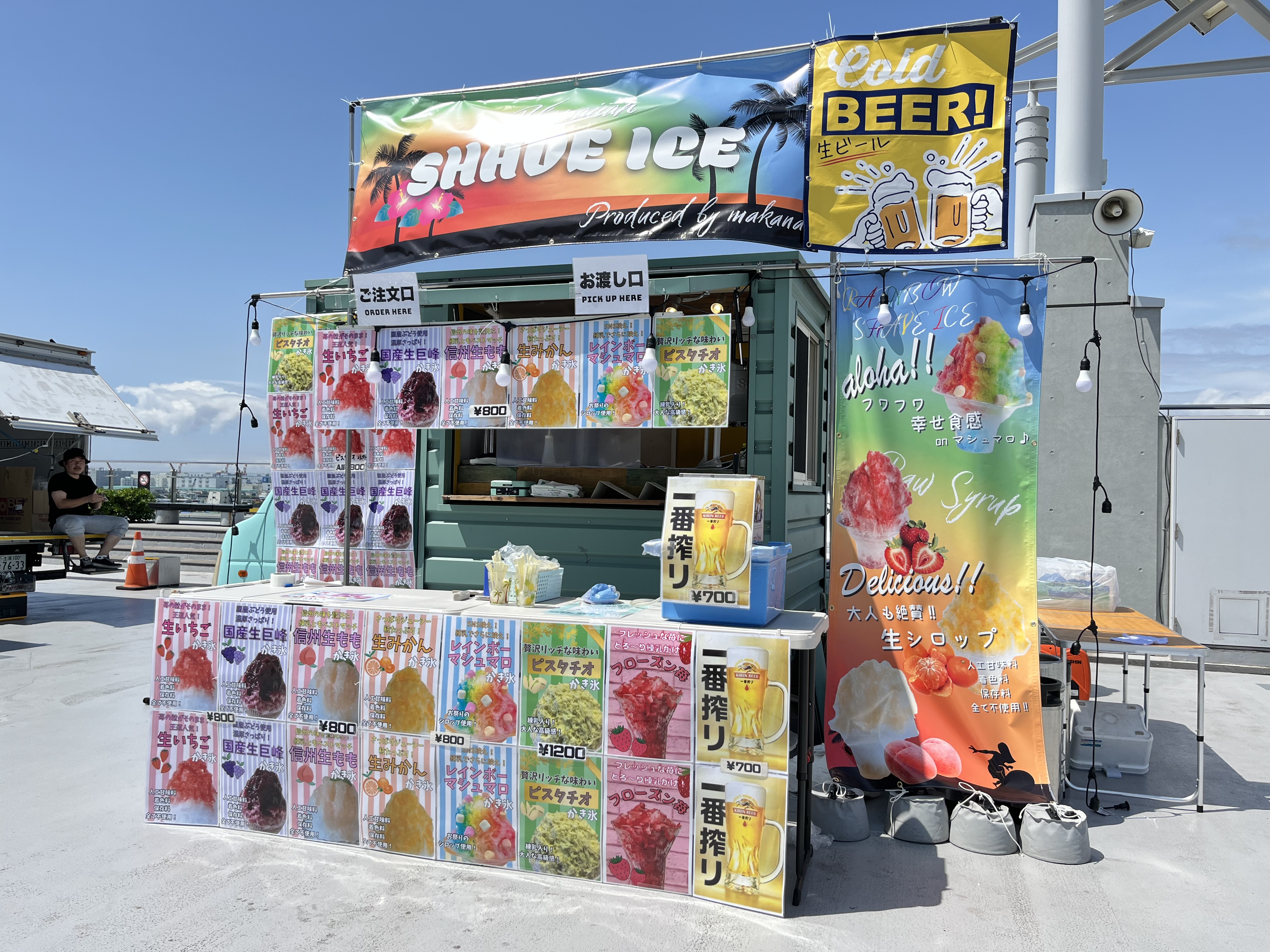 レインボーのマシュマロかき氷や、保存料・香料などの添加物不使用生シロップのふわふわかき氷を販売。