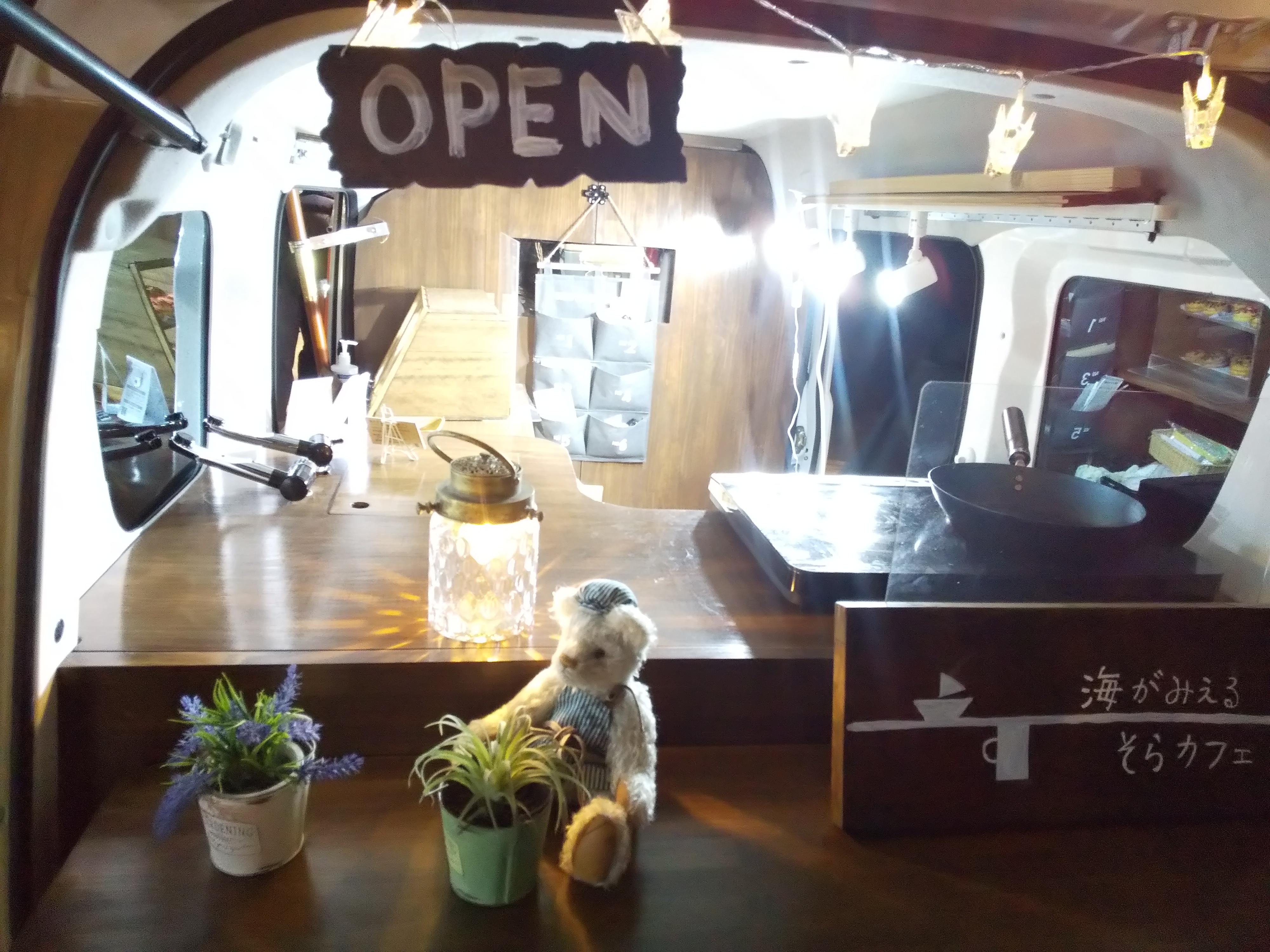 軽自動車のミニキャブバンなのでコンパクトです。以前はカフェを経営していたので、カフェ風の雰囲気を演出しており、誰でも親しみやすいです。装飾や商品もお客様から可愛いと言っていただいております。
