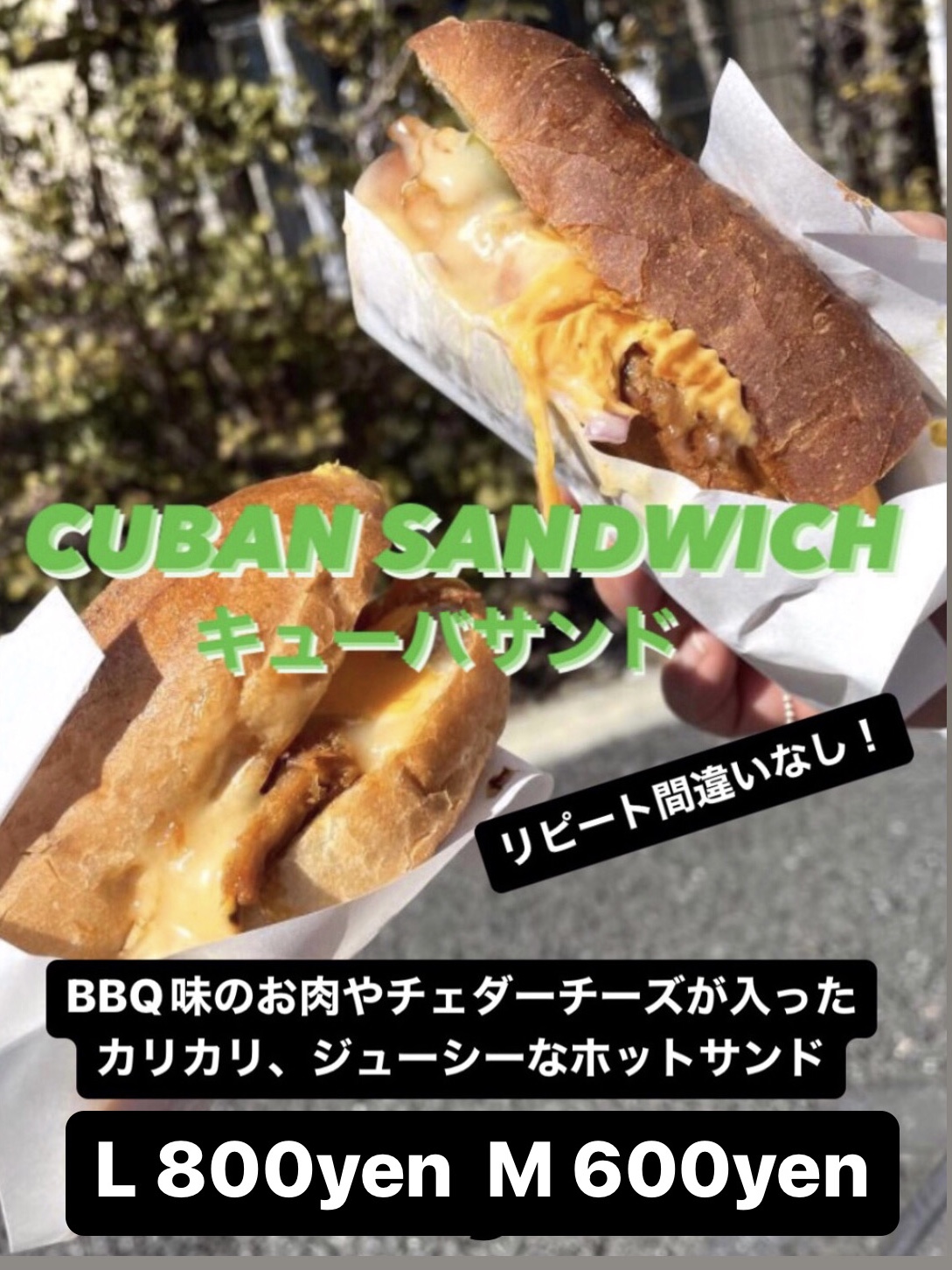 リピーター続出のキューバサンドを是非一度は召し上がってください!