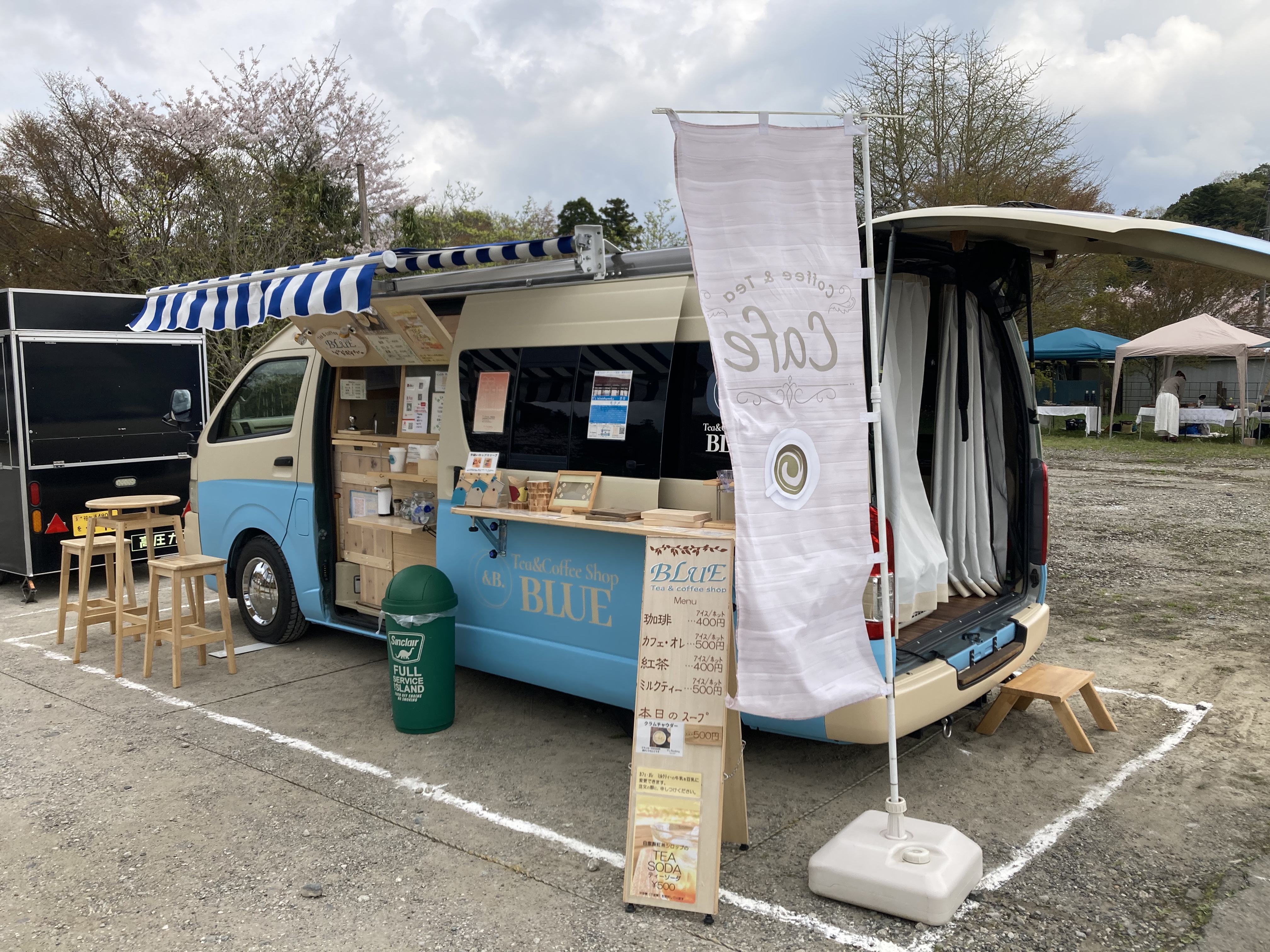 (車種: ハイエース 長さ600cm(営業中はリヤハッチドアオープン状態)幅190cm 高さ240cm)