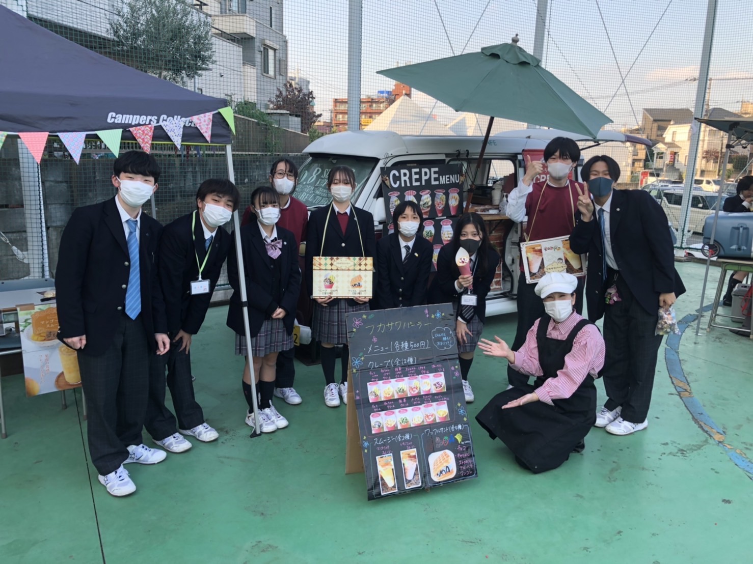 クレープ/かき氷/ドリンク類/わたあめ/ポテト/ホットドッグ/焼きそば/牛串/けずりいちご/アイス